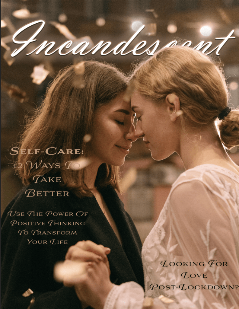 For this project, we had to come up with a list of words that we liked and then from there we made a magazine color based on one of those words. The word we came up with was Incandescent: emitting light as a result of being heated. This word gave off muted orangey/red tones and sparkles vibes so we made the text glowing and made the confetti in this earth tone image we found stand out more. We made the magazine about dating and self care because the definition of the word seemed to be pretty accurate with that.