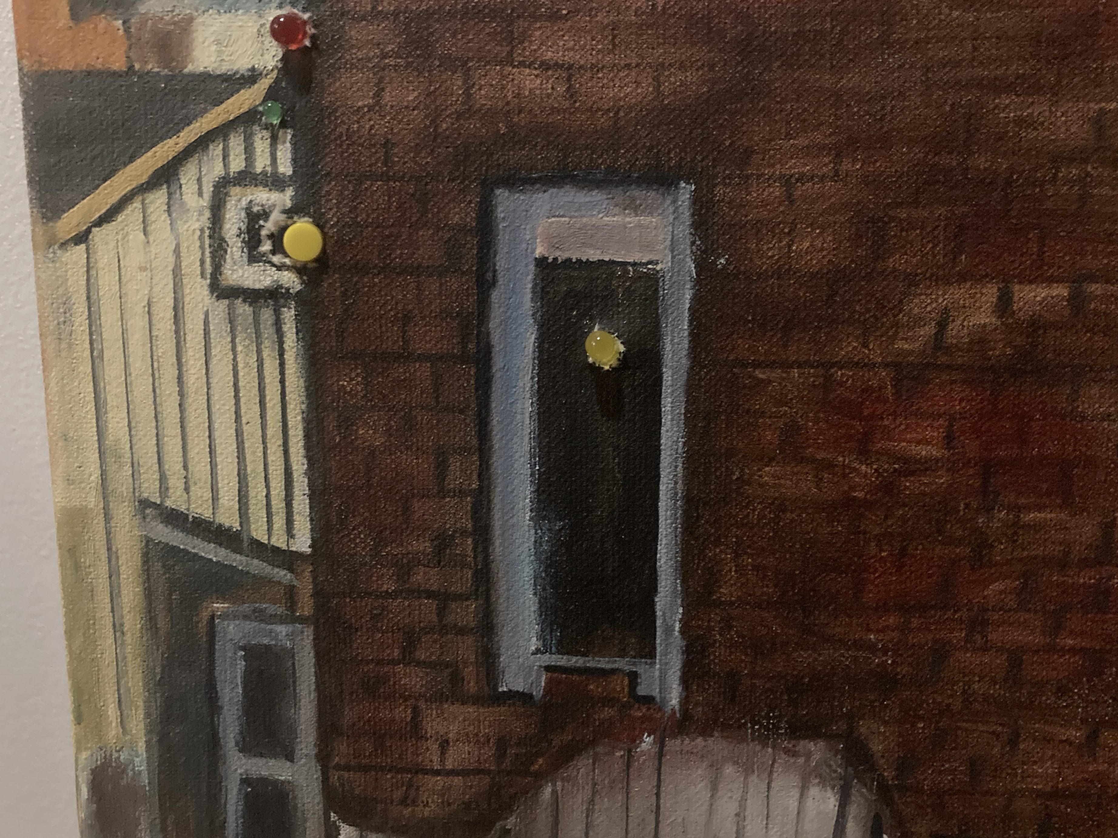 A big part of this project was trying to make everything look integrated into the painting, and a lot of that was putting the components on top of the painting before it poked holes through it to see if it would look right.
