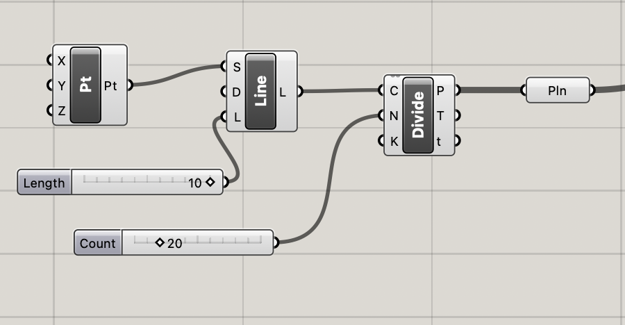 Next was creating the slicer. Since grasshopper is unit-less, I decided to make every 2 bars (in the sliders for hight and width) be equal to 1 inch so my total shape would be 5×4 inches (actually a bit larger because the base was expanded a bit. I made sure there would be 20 planes, because the total hight is 5 and divided by the thickness of the material, which would be an 1/4 of an inch. (4 cuts to get an inch, 5 inches, 4*5 = 20).