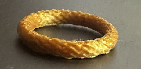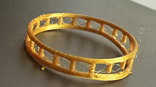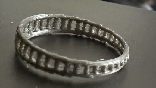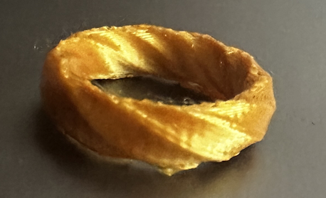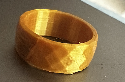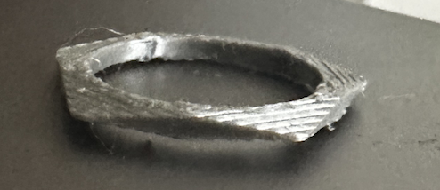 There wasn’t much more to change of this ring than the amount of sides of the polygon, and how wide the ring was. I ended up printing 3 rings from this code, 2 with a higher amount of sides and one with only 5, making it look a little like a screw.