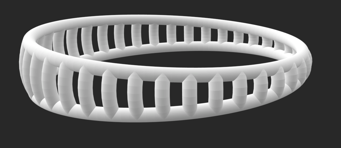 For this ring I only created 2 outputs, one of them with slightly less connecting bands, and one that had more of an angle between the bottom and top of the ring.