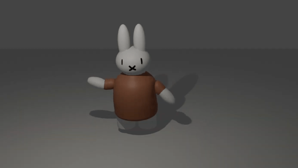 For this project, I used Blender’s rigging and pose mode to create a basic animation of the cartoon character Miffy. I made a basic model of Miffy and then used the texture paint mode to create the colors and basic textures. I made a basic human-esque rig using the basic bones. I then went into pose mode and created a basic animation using keyframes.